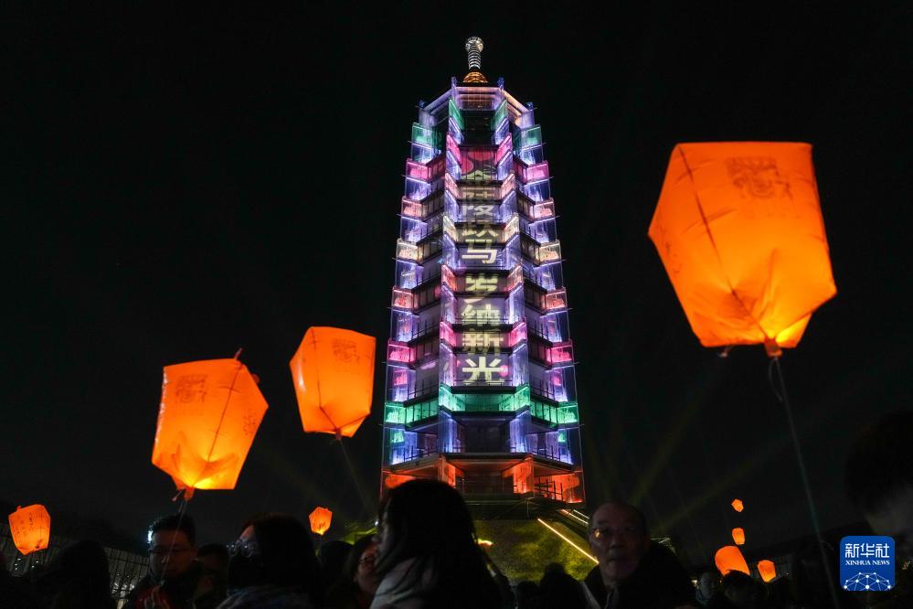 2月17日,南京大報(bào)恩塔點(diǎn)亮多彩燈光慶祝春節(jié)。