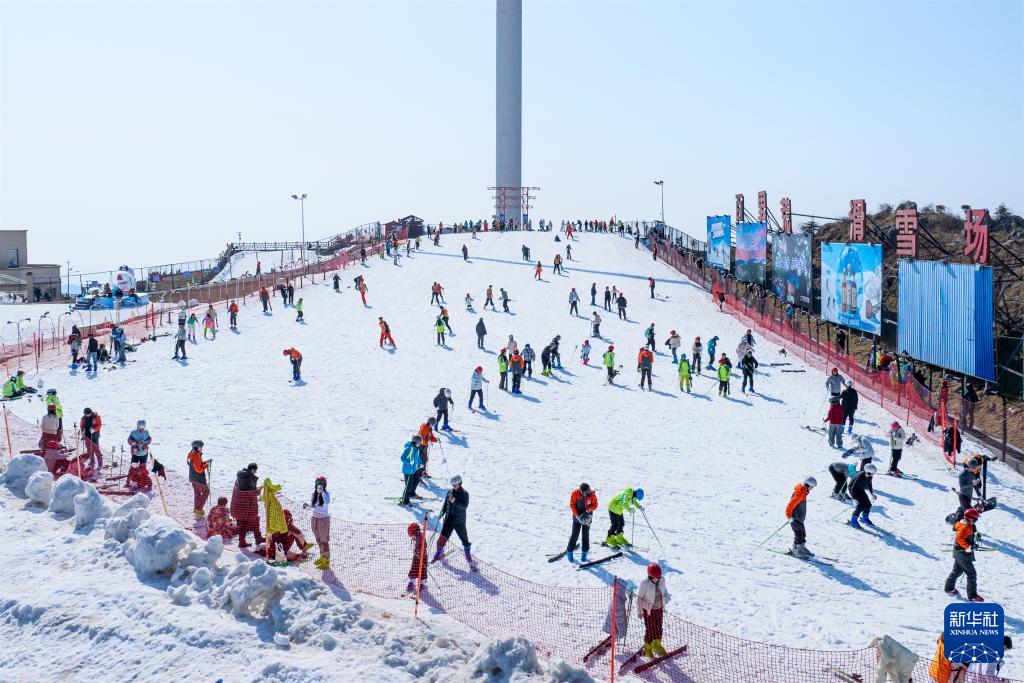 2月22日拍攝的湖北省襄陽市第十二屆全國大眾冰雪季群眾冰雪運(yùn)動(dòng)推廣活動(dòng)現(xiàn)場。