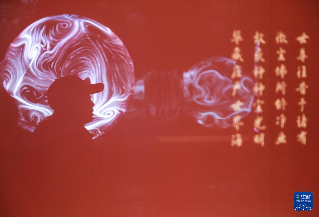 2月27日,參觀者在“既往未來(lái)——小西天文物擷珍與懸塑藝術(shù)特展”的“無(wú)量之境”展臺(tái)拍攝。
