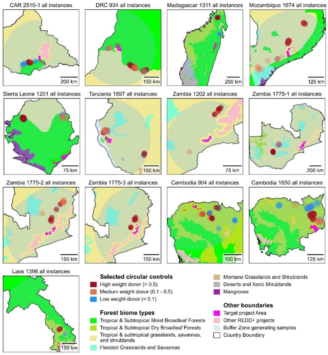 團隊基于多種合成控制法、多源遙感地理大數(shù)據(jù)和多輪隨機實驗,綜合考慮各類時變毀林風險因子和時空特征匹配算法,發(fā)展出一套透明可靠的自愿性REDD+項目動態(tài)基線構(gòu)建方法,實現(xiàn)項目和區(qū)域尺度上的REDD+項目的氣候效益的準確量化。
