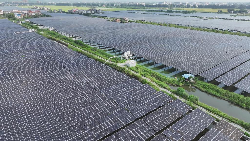在防城港市東興市江平鎮(zhèn)巫頭村,記者抬頭看到一排排光伏板,低頭則是一大片魚塘,當?shù)氐摹皾O光互補”項目實現(xiàn)綠色發(fā)電與魚類養(yǎng)殖同步推進。項目采用柔性支架樁設計和新型光伏組件,不僅具備雙面發(fā)電功能,還減少了40%的單位容量樁基使用量,大幅提升魚塘養(yǎng)殖面積與系統(tǒng)發(fā)電量。
