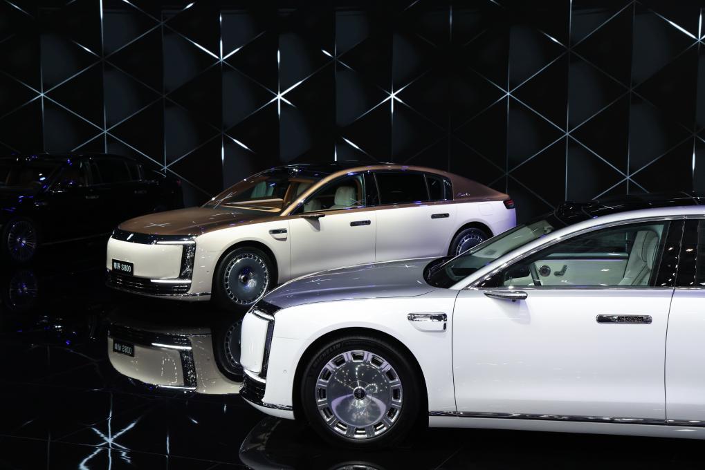 2025粵港澳大灣區(qū)車展上,在鴻蒙智行展臺(tái)拍攝的尊界S800。新華社記者梁旭 攝