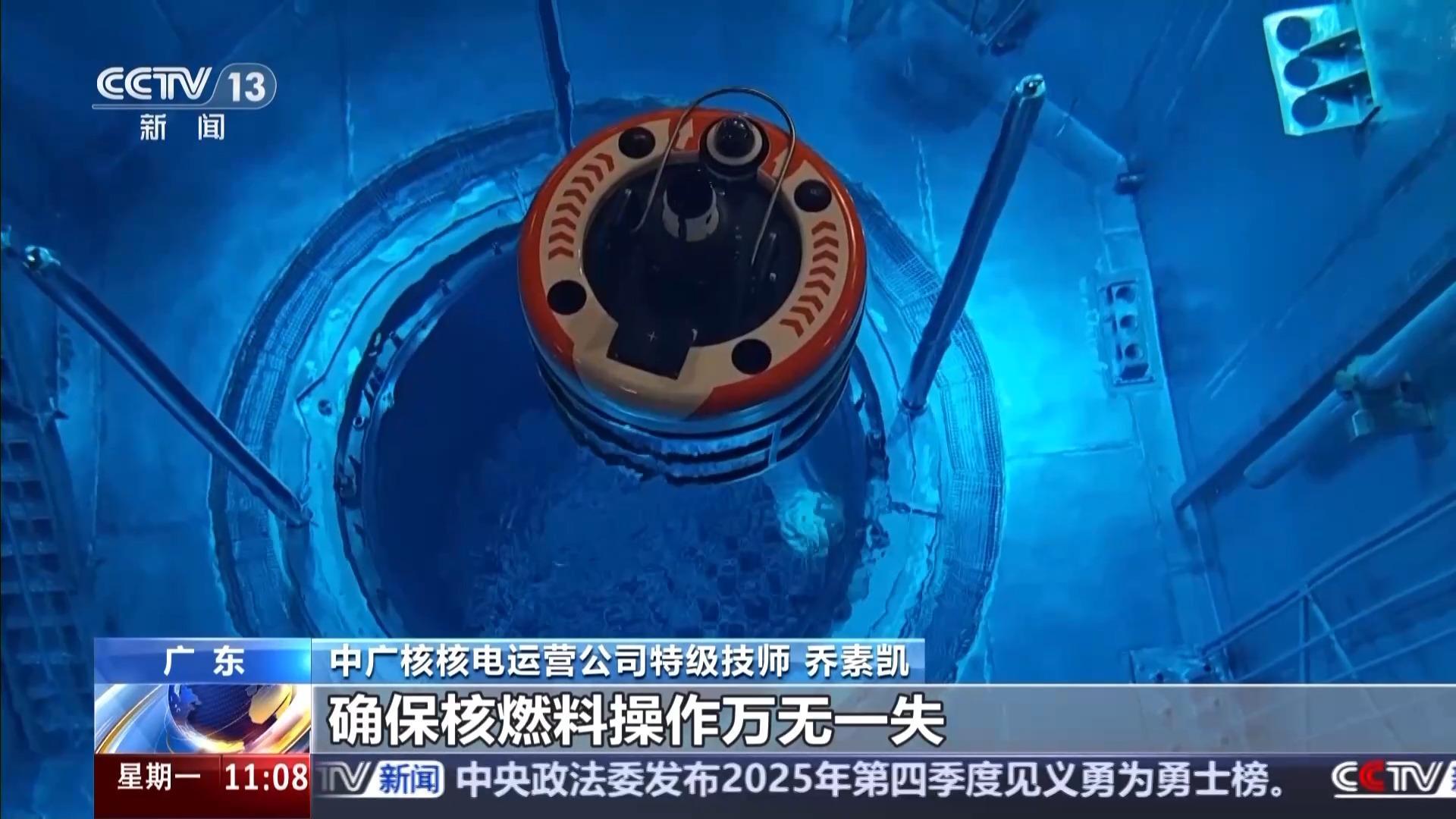 中廣核核電運營公司特級技師 喬素凱:我們這次裝料要用到新研發(fā)的裝料巡檢機器人,它也是第一次在核電站首次應(yīng)用,主要用途是為水深18米下的核燃料操作提供高清視頻檢查和強光輔助照明。