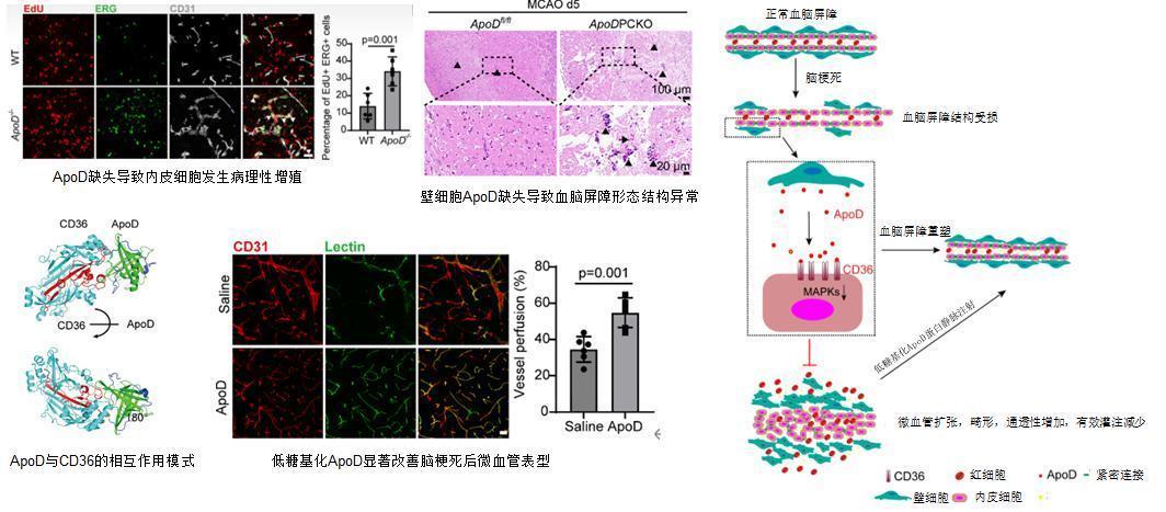 結(jié)果發(fā)現(xiàn),當實驗動物體內(nèi)缺乏ApoD時,腦卒中后的血管屏障破壞更加嚴重,腦損傷明顯加重;相反,當補充重組的ApoD后,血管屏障的完整性得到增強,腦組織損傷減輕,神經(jīng)功能恢復(fù)更好。這些實驗結(jié)果證實,ApoD確實在腦卒中后發(fā)揮著重要的保護作用,就像是血管炎癥的“內(nèi)源性剎車系統(tǒng)”,能夠及時制止過度的炎癥反應(yīng)。