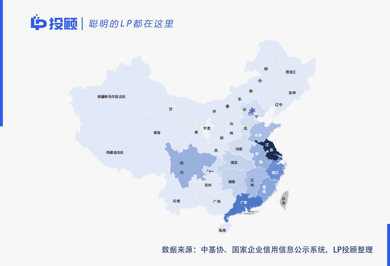 2024年,活躍機(jī)構(gòu)LP主要集中在江蘇省、浙江省、廣東省、上海市、北京市等東南沿海發(fā)達(dá)地區(qū)。