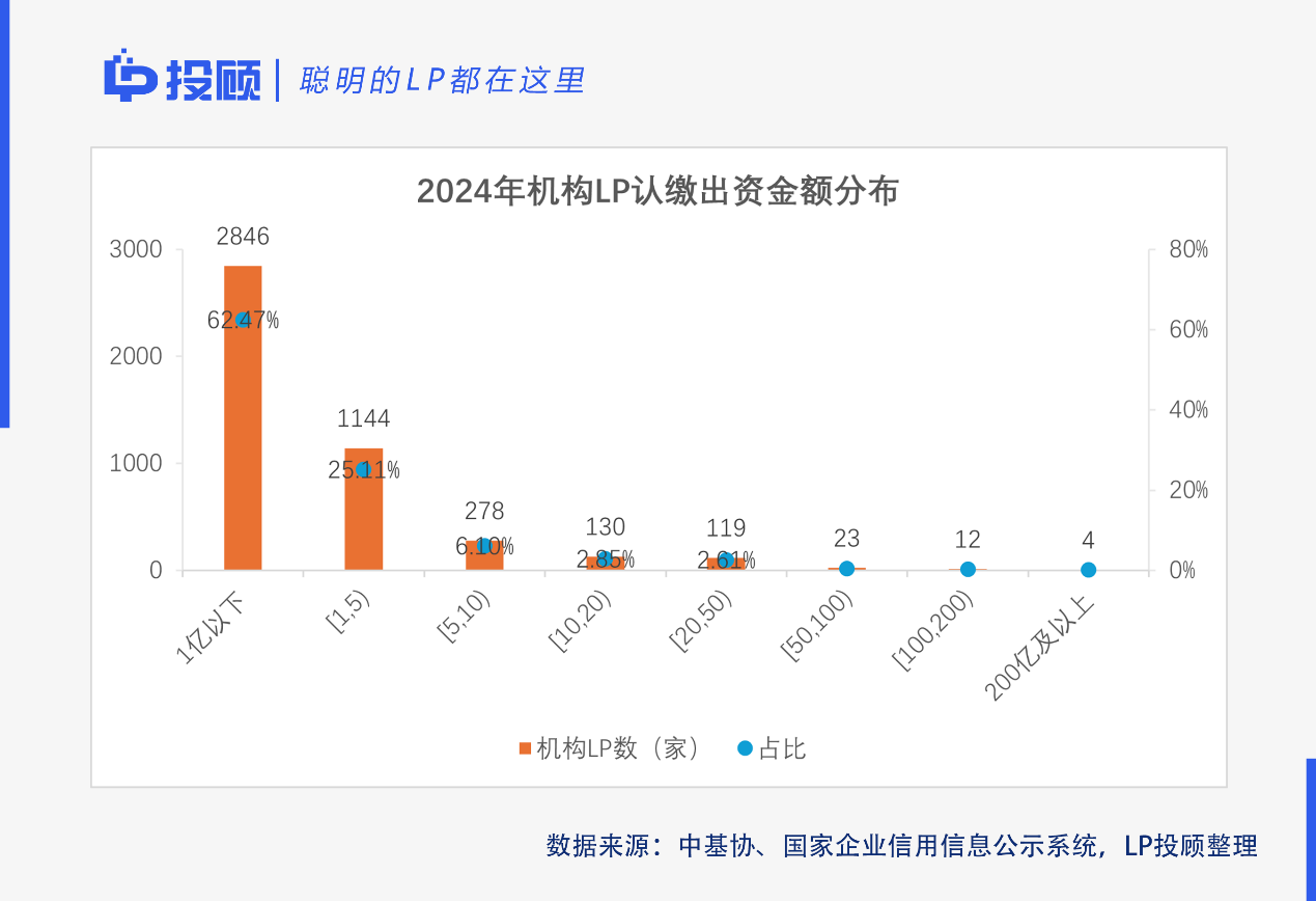 三是機(jī)構(gòu)LP出資呈現(xiàn)二八分布,頭部效應(yīng)顯著。