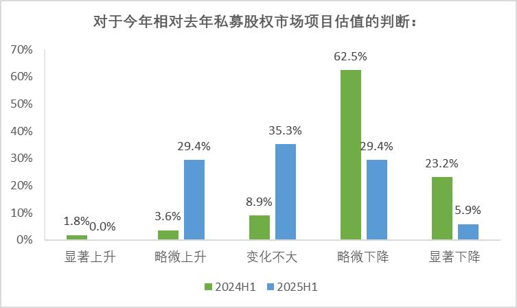 相較于去年私募股權市場項目估值的判斷,六成以上現場投資機構認為穩(wěn)中有升。