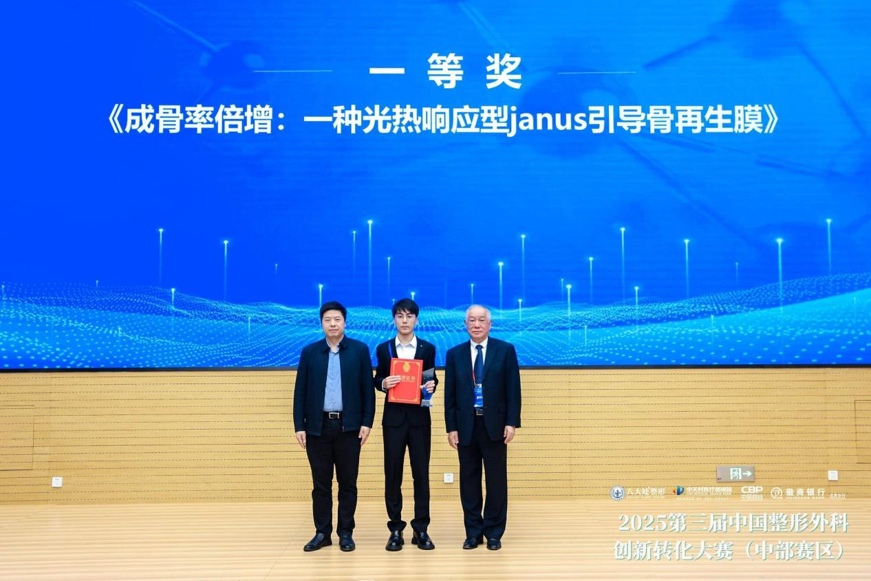 現(xiàn)場,12個入圍項(xiàng)目覆蓋新型醫(yī)美材料、手術(shù)導(dǎo)航系統(tǒng)等科技領(lǐng)域。經(jīng)14位專家評審,《成骨率倍增:一種光熱響應(yīng)型Janus引導(dǎo)骨再生膜》獲一等獎,該膜通過雙面功能設(shè)計(jì)促進(jìn)骨再生,兼具生物相容性與機(jī)械支撐力。另有《AI雙核賦能:基于智能體的醫(yī)美專家助理系統(tǒng)》等獲專項(xiàng)獎,展現(xiàn)AI、3D外泌體等技術(shù)的創(chuàng)新應(yīng)用。