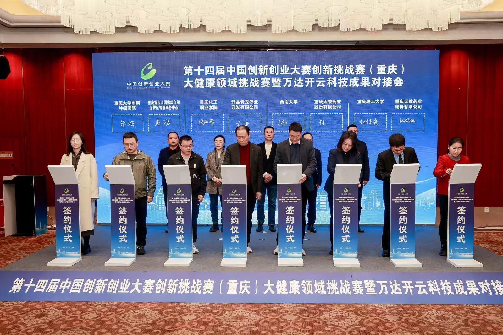 活動現(xiàn)場實現(xiàn)了多項成果的務實對接。重慶市中藥研究院與重慶市長江職業(yè)培訓學校、南京中醫(yī)藥大學與重慶市寶華制藥有限公司、重慶大學與重慶海通環(huán)??萍加邢薰镜?0個產(chǎn)學研合作及科技成果轉(zhuǎn)化項目成功簽約,標志著賽事正有效推動創(chuàng)新成果落地生根。