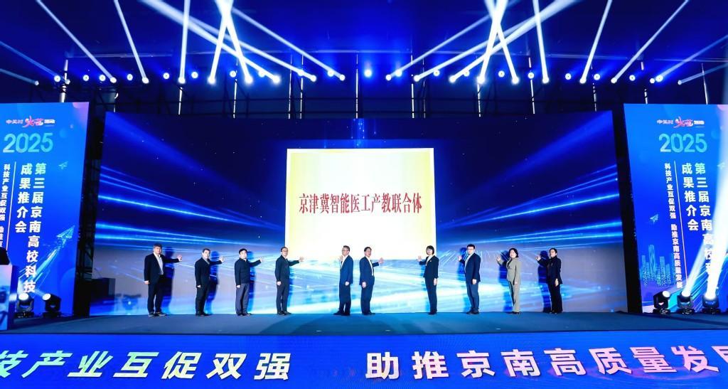 大會現(xiàn)場發(fā)布了《大興區(qū)推進科技成果轉化落地行動方案(2025—2027年)》,京南高校誠邀各方共建實驗室、臨床研究中心等創(chuàng)新平臺。同時,“京津冀智能醫(yī)工產教聯(lián)合體”揭牌,4所高校與9家企業(yè)現(xiàn)場簽署產學研合作項目。