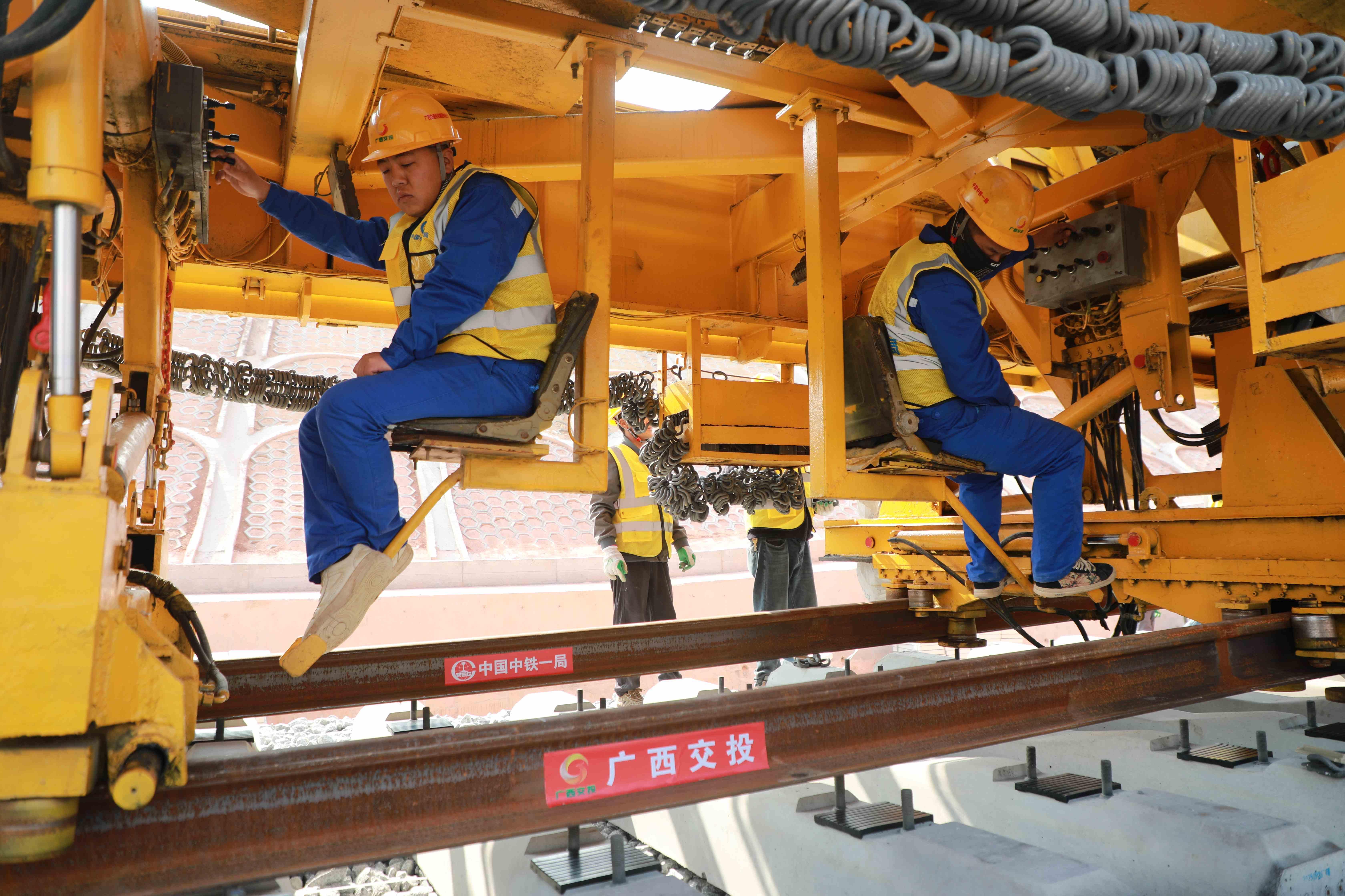 1月6日,隨著作業(yè)人員熟練地操控著我國自主研發(fā)的CPG500型鋪軌機組,平穩(wěn)精準地將一對500米長鋼軌鋪設(shè)到線路上,標志著廣西柳州至廣州鐵路柳州至梧州段(以下簡稱柳梧鐵路)正式進入全線鋪軌階段。