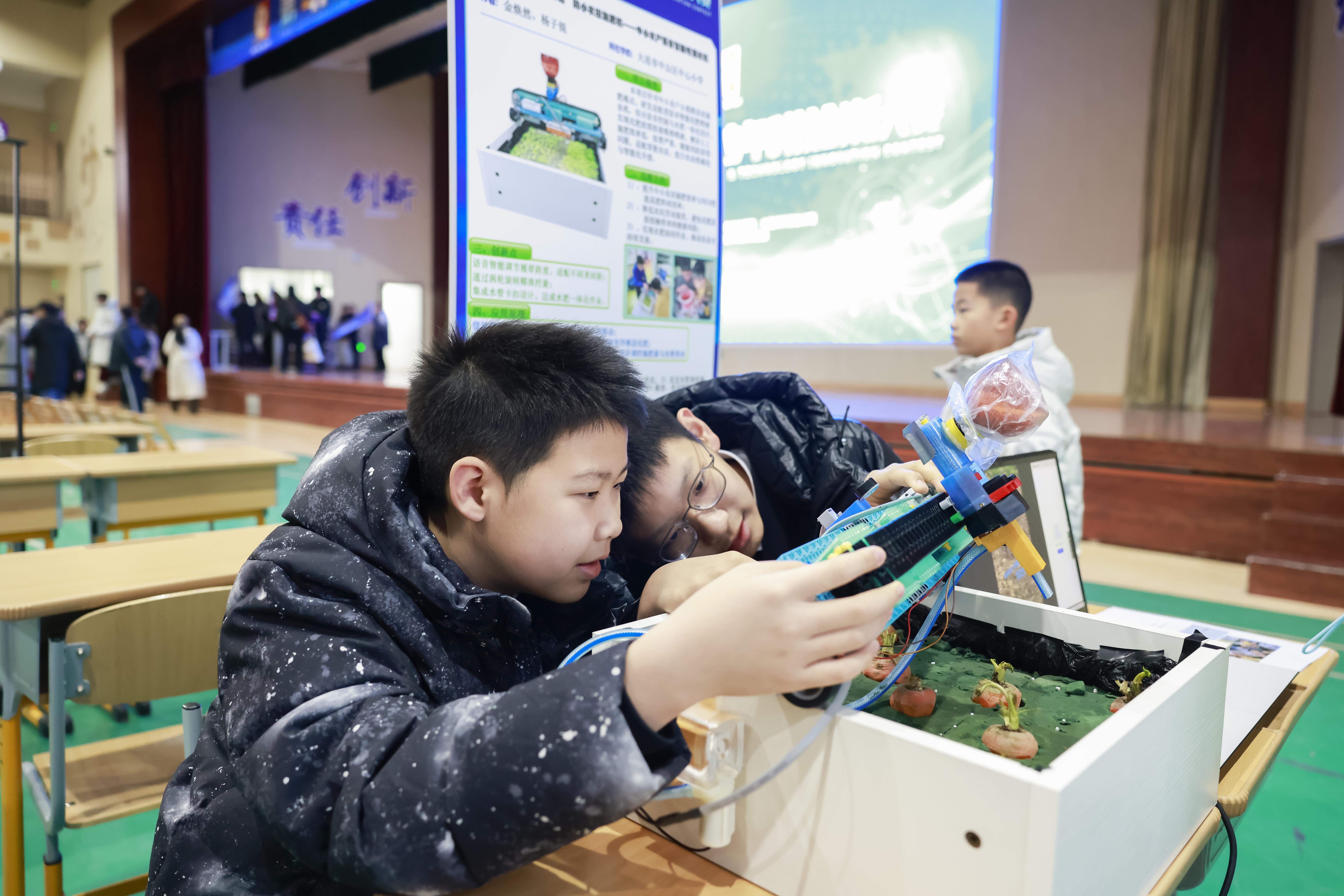 激情答辯,思維碰撞?!澳銥槭裁催x擇這個結構?”“實驗數(shù)據(jù)是如何收集的?”評審專家的問題接二連三。面對來自高校與科研院所的評委,小選手們從容應答,不時用實物、圖表輔助說明。答辯區(qū)時而安靜專注,時而響起掌聲。不少評委表示:“孩子們的項目不僅有趣,更體現(xiàn)出問題意識和扎實的研究態(tài)度。”