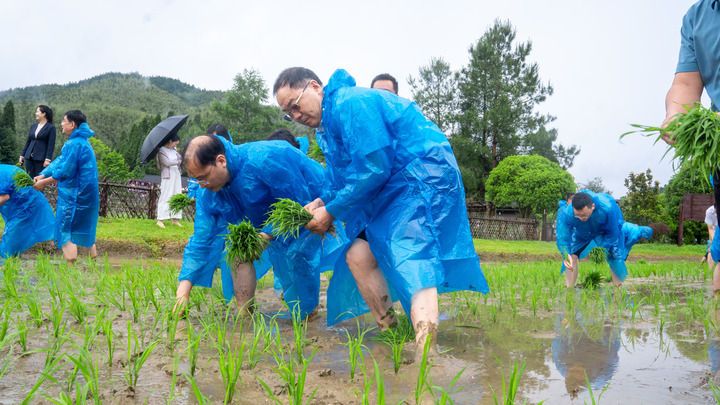 張啟發(fā)院士團隊在大井毛澤東舊居前插秧。