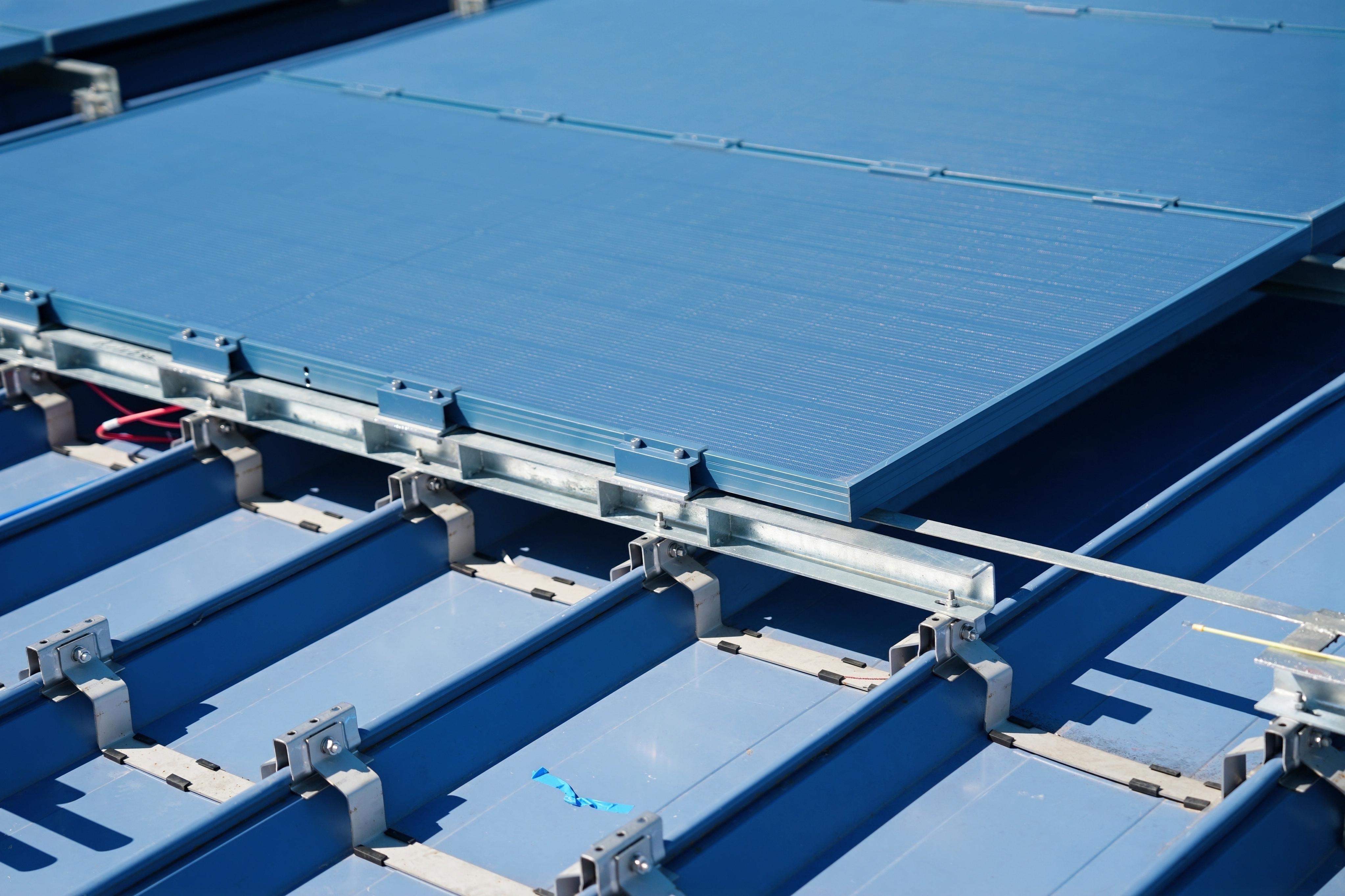 常規(guī)的加厚板材方案行不通,只會增加重量。“團隊最終創(chuàng)新性地提出了‘0.7毫米不銹鋼板瓦楞結(jié)構(gòu)’解決方案。”遠東綠能產(chǎn)品研發(fā)經(jīng)理黃劍介紹,團隊將不銹鋼板沿屋面短邊方向軋制成瓦楞狀,這一巧思相當(dāng)于將整個屋面分割為多個獨立加強的小單元,提升了結(jié)構(gòu)強度和抗風(fēng)揭能力,同時完美保持了材料的輕量化特性。配合縱向增設(shè)的多個固定點,團隊在承重極限內(nèi),為屋頂披上了一層堅固的“發(fā)電鎧甲”,破解了在輕型屋面上實現(xiàn)高抗風(fēng)性能光伏鋪設(shè)的難題。