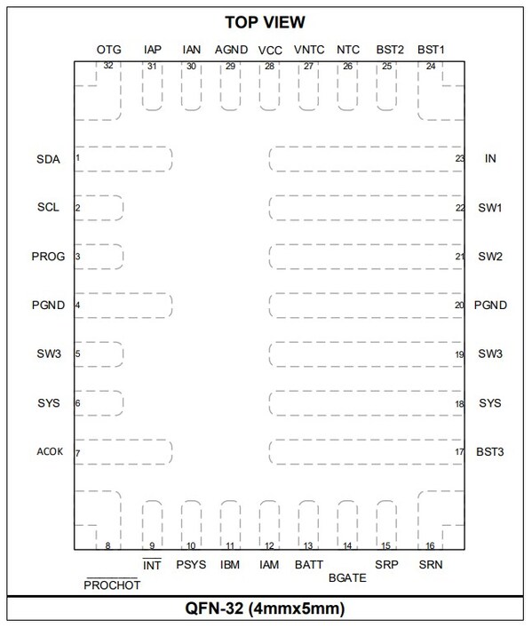 MP2764主要產(chǎn)品特性:支持2-4串電池,單串電池電壓可達(dá)4.8V,支持最大28V絕對(duì)輸入電壓和最大22V工作電壓,全集成內(nèi)部功率FETs,NVDC電源路徑管理功能,所有充電和反向放電參數(shù)均為I2C/SMBus可編程,用于靈活配置充放電參數(shù),Buck充電模式下支持高達(dá)8A的系統(tǒng)和充電電流,放電模式下高達(dá)5A的輸出電流,兼容USB PD PPS 放電模式4V-21V,集成IMVP9以及PSYS系統(tǒng)功率監(jiān)控,12bit ADC實(shí)時(shí)監(jiān)測(cè)充放電電壓和電流信息,完備的充放電保護(hù)功能,包括輸入過(guò)壓保護(hù)(OVP)、電池過(guò)壓保護(hù)、系統(tǒng)過(guò)壓保護(hù)、過(guò)溫關(guān)斷保護(hù)、電池溫度保護(hù)等,還集成了VMIN主動(dòng)保護(hù)(VAP)功能,采用QFN-30(4mm*5mm)封裝。
