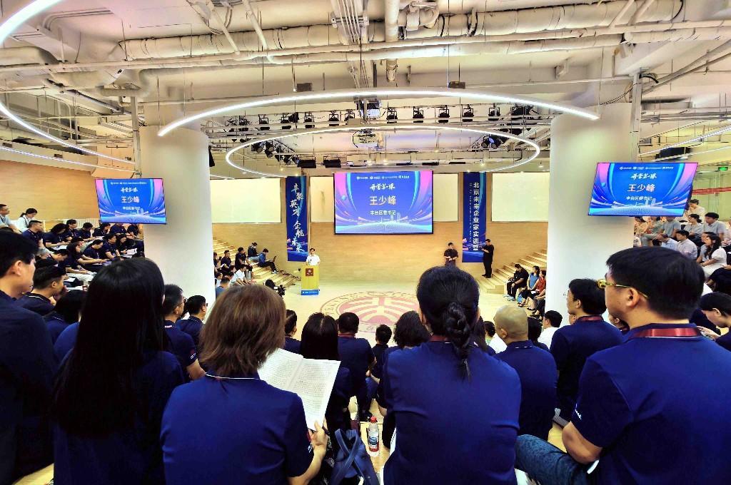 現(xiàn)場,豐臺區(qū)委書記王少峰講授開營第一課,結(jié)合豐臺“倍增追趕、合作發(fā)展”目標,解析區(qū)域產(chǎn)業(yè)發(fā)展優(yōu)勢與未來賽道機遇。他表示,“北京未來企業(yè)家實訓營”是立足服務(wù)國家戰(zhàn)略全局和首都發(fā)展大局,深刻把握時代脈搏與區(qū)域使命,作出的一項系統(tǒng)性、務(wù)實可行的工作舉措。實訓營要成為思想賦能的課堂、資源對接的紐帶,讓企業(yè)家在百年學府的人文浸潤中,感悟創(chuàng)新精神與家國情懷,成長為兼具國際視野與民族擔當?shù)摹拔磥砥髽I(yè)家”。
