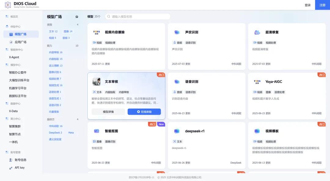 DIOS決策智能操作系統(tǒng)的DIOS Cloud的云端智能服務(wù),適用于希望快速獲得AI能力、無(wú)需自建算力的客戶(hù),提供: