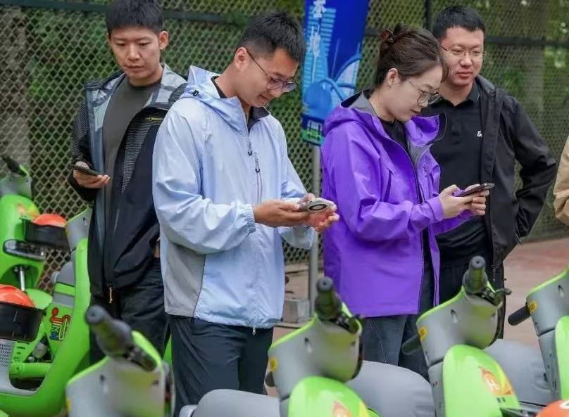 在內(nèi)蒙古自治區(qū)鄂爾多斯市康巴什街頭,市民掃碼體驗“氫個蛋”共享單車。(受訪者供圖)