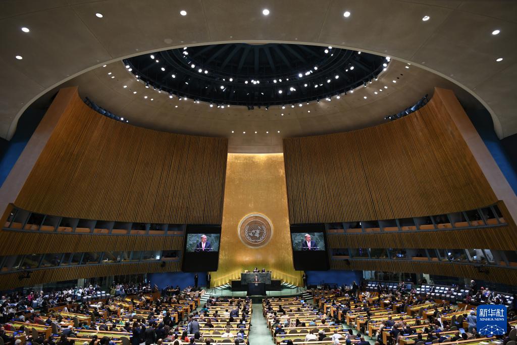 這是2025年9月22日在位于紐約的聯(lián)合國總部拍攝的聯(lián)合國大會紀(jì)念北京世婦會30周年高級別會議現(xiàn)場。新華社記者 李睿 攝
