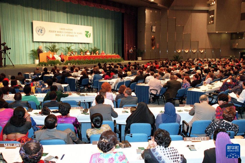1995年9月4日,聯(lián)合國第四次世界婦女大會在中國北京召開。會議通過了具有里程碑意義的《北京宣言》和《行動綱領(lǐng)》。新華社發(fā)