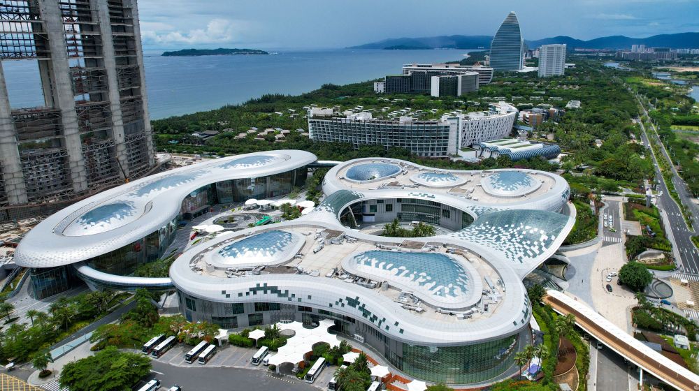 這是2025年5月29日拍攝的位于海南省三亞市的三亞國(guó)際免稅城(無人機(jī)照片)。新華社記者 楊冠宇 攝