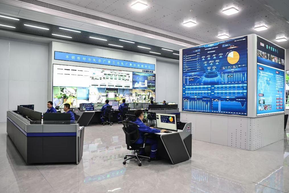 工作人員在鞍鋼集團(tuán)所屬的本鋼板材冷軋總廠第三冷軋廠集控中心監(jiān)控設(shè)備運(yùn)行情況。新華社記者 潘昱龍 攝