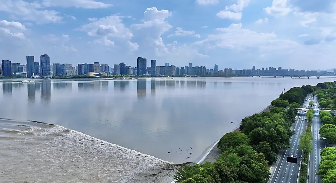 時光如奔涌挺進的大潮,它在之江大橋上揮就彩虹,在錢塘江大橋下蕩起層浪,在復(fù)興大橋旁聞濤拍岸,又在西興大橋邊輕撫“蓮花”,激流蜿蜒但從不走回頭路。