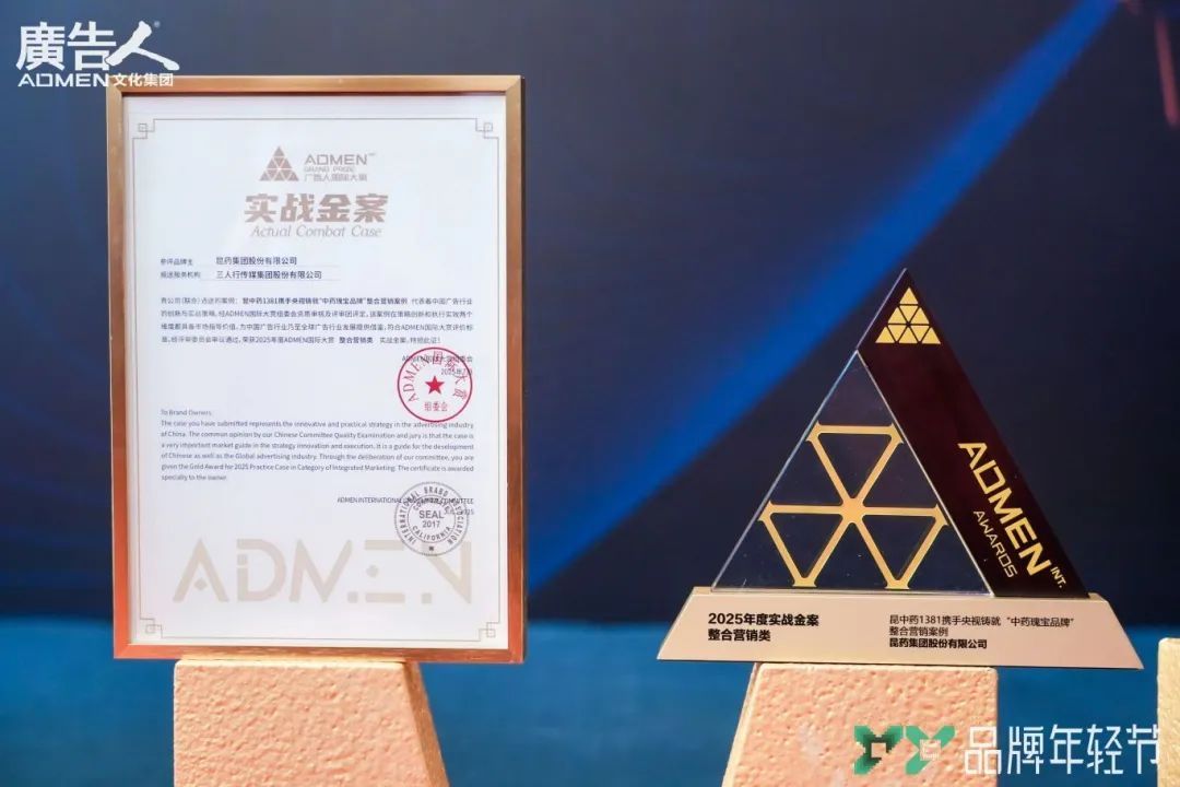 近日,以“實(shí)效創(chuàng)新 與智共生”為主題的2025ADMEN國際大賞在北京廣播大廈舉行。昆明高新區(qū)企業(yè)昆藥集團(tuán)股份有限公司(以下簡稱“昆藥集團(tuán)”)憑借《昆中藥1381攜手央視鑄就“中藥瑰寶品牌”整合營銷案例》,從萬余件參評作品中脫穎而出,榮膺“整合營銷類 實(shí)戰(zhàn)金案”殊榮,在這場聚集了500余家行業(yè)頭部機(jī)構(gòu)、媒體平臺及品牌主的年度盛典中,充分彰顯昆藥集團(tuán)及昆中藥1381老字號藥企在AI時代的創(chuàng)新傳播實(shí)力。