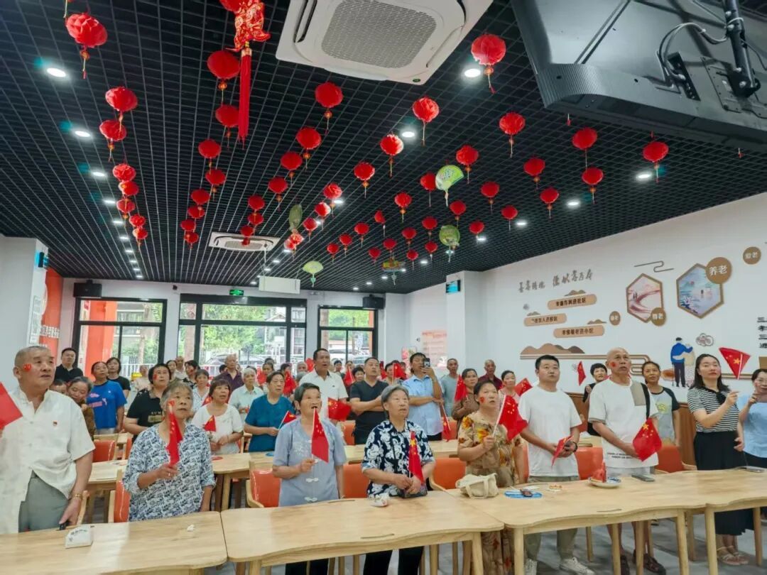 當(dāng)莊嚴(yán)的國(guó)歌聲在服務(wù)站活動(dòng)室內(nèi)響起,全體在場(chǎng)居民自發(fā)肅立,搖起手中的紅旗,齊聲高唱國(guó)歌,目光緊緊鎖定屏幕上天安門(mén)廣場(chǎng)的盛大場(chǎng)面。隨著受閱部隊(duì)一個(gè)個(gè)方陣邁著鏗鏘有力、整齊劃一的步伐走過(guò),新型武器裝備依次亮相,天空梯隊(duì)呼嘯而過(guò),活動(dòng)現(xiàn)場(chǎng)不時(shí)爆發(fā)出陣陣熱烈的掌聲和由衷的贊嘆聲。