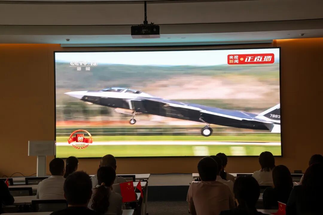 直播畫面中,令人震撼的場(chǎng)景接連呈現(xiàn)。參閱部隊(duì)整齊劃一的陣列,展現(xiàn)出鋼鐵般的紀(jì)律;空中護(hù)旗梯隊(duì)翱翔天際,氣勢(shì)恢宏;各類新型武器裝備一一亮相,彰顯著我國強(qiáng)大的國防實(shí)力。徒步方隊(duì)步伐堅(jiān)定有力,戰(zhàn)旗方隊(duì)威風(fēng)凜凜,裝備方隊(duì)的先進(jìn)裝備更是吸引著大家的目光,它們代表著中國制造的精密度與高質(zhì)量,是我國科技實(shí)力和工業(yè)水平的生動(dòng)體現(xiàn)。每一個(gè)精彩瞬間,都讓現(xiàn)場(chǎng)的員工們心潮澎湃,會(huì)議室里不時(shí)爆發(fā)出熱烈的掌聲和歡呼聲。