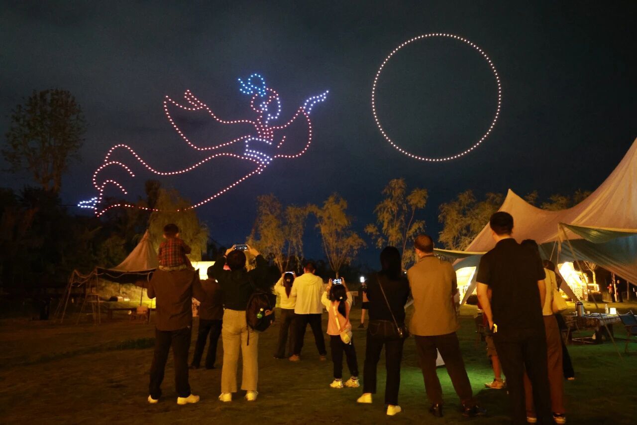 10月6日晚,安康高新區(qū)“要高興 來高新”無人機飛行燈光秀活動在桃花源露營基地舉行,活動由高新集團坤鵬空聯(lián)科技有限公司主辦,以科技與藝術交融的獨特形式,為國慶中秋“雙節(jié)”營造出喜樂祥和的氛圍。