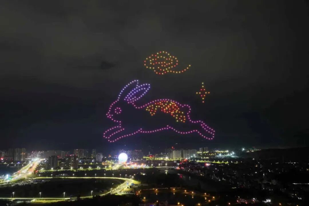 活動中,500架無人機在指令操控下緩緩升空,先后呈現(xiàn)出國旗、玉兔、嫦娥、高鐵等富有寓意的圖案。鮮艷的國旗造型彰顯家國情懷,靈動的玉兔與嫦娥元素傳遞傳統(tǒng)文化韻味,疾馳的高鐵圖案則展現(xiàn)時代發(fā)展活力,一幕幕絢麗畫面在夜空中接連綻放,活動現(xiàn)場人頭攢動,觀眾們紛紛舉起手機記錄精彩瞬間。