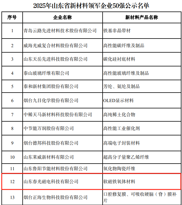 其中,山東春光磁電科技有限公司憑借其自主研發(fā)的軟磁鐵氧體材料,打破國(guó)外技術(shù)壁壘,實(shí)現(xiàn)關(guān)鍵材料國(guó)產(chǎn)化突破,成功入選全省新材料領(lǐng)軍企業(yè)50強(qiáng),充分展現(xiàn)了臨沂高新區(qū)在新材料領(lǐng)域的創(chuàng)新實(shí)力與發(fā)展?jié)摿Α?/p>