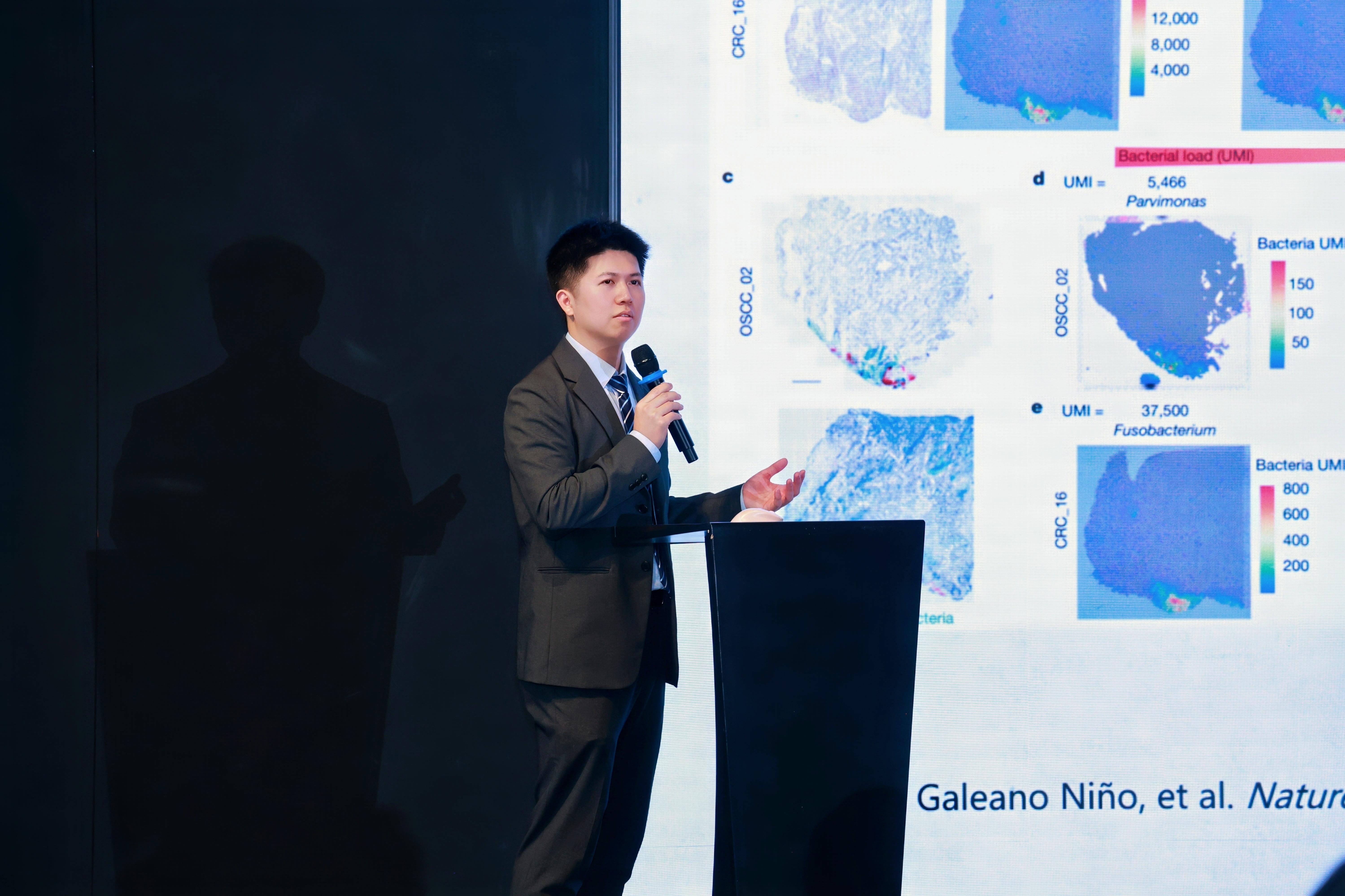 中山大學(xué)附屬第一醫(yī)院臨床博士后張?zhí)旌?span style="text-indent: 2em;">,則以《瘤內(nèi)菌:從“旁觀”到“共謀”——胃腸腫瘤免疫治療的新靶點》為主題,系統(tǒng)闡述了腸道菌群與瘤內(nèi)菌群在定植位置、組成特征和功能機制上的核心差異,揭示了瘤內(nèi)菌群特別是具核梭桿菌通過調(diào)控腫瘤微環(huán)境影響免疫治療療效的關(guān)鍵機制,為開發(fā)基于瘤內(nèi)菌調(diào)控的腫瘤免疫治療新策略提供了重要思路。