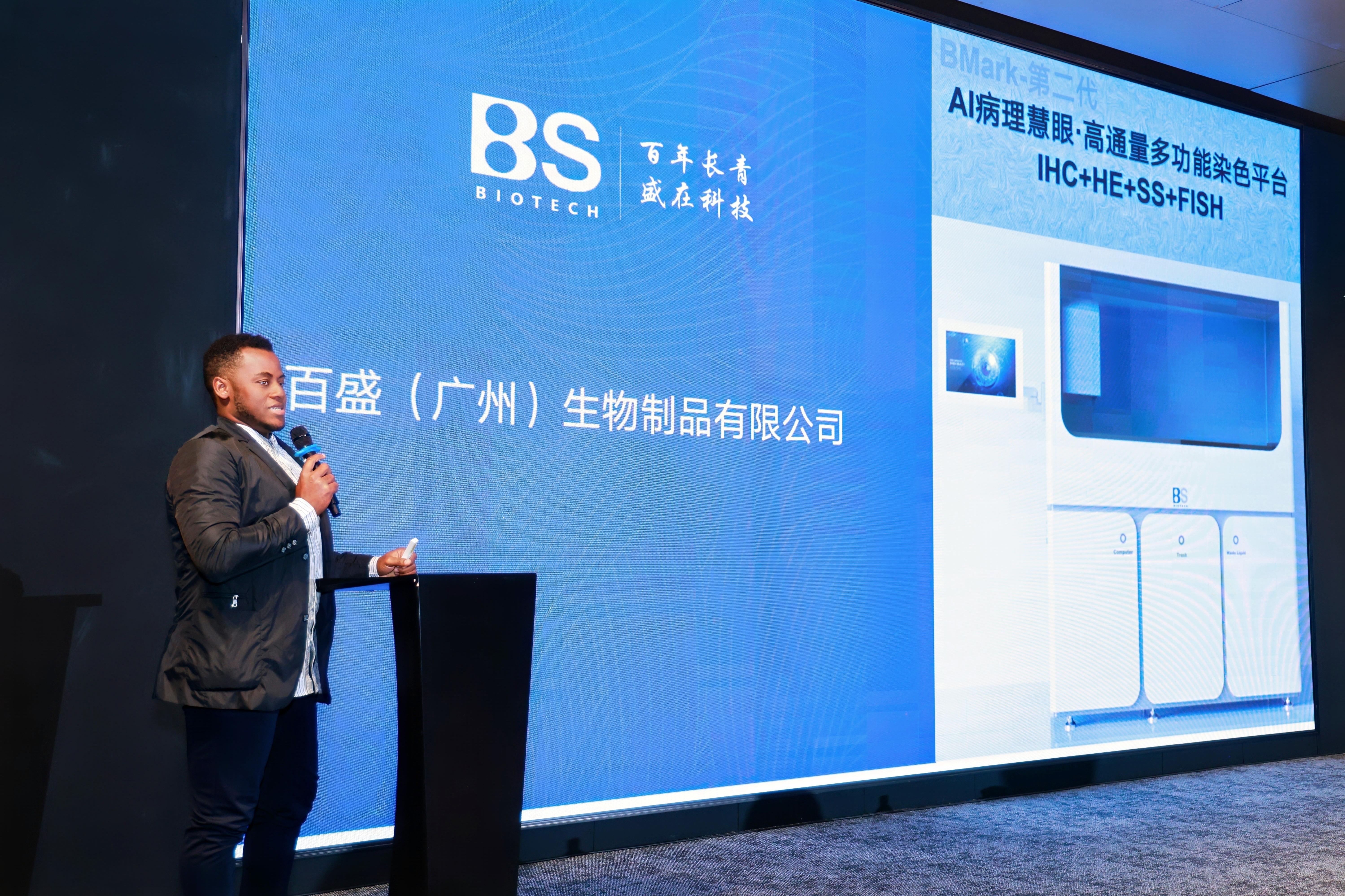 首先百盛(廣州)生物制品有限公司研發(fā)總監(jiān)MOBET進(jìn)行了《Al病理慧眼·高通量多功能染色平臺》的分享,展示了公司的“AI病理慧眼·高通量多功能染色平臺”,致力于提升病理診斷的效率和精準(zhǔn)度。
