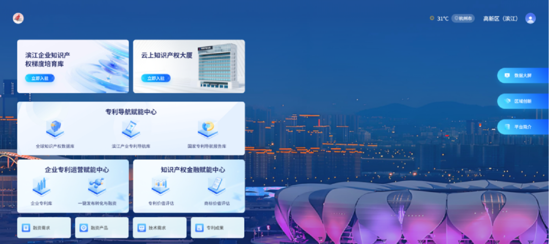 平臺智慧賦能。搭建AI智能服務(wù)平臺,集成“專利導(dǎo)航”“企業(yè)專利運營”“知識產(chǎn)權(quán)金融”三大賦能中心,實現(xiàn)專利智能匹配、價值評估和金融產(chǎn)品在線對接,目前已上線61款知識產(chǎn)權(quán)金融產(chǎn)品。