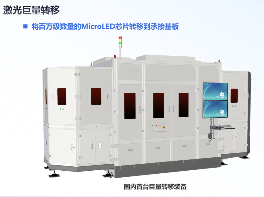 依托大族半導(dǎo)體深厚的技術(shù)積淀,大族尚立并非從零開(kāi)始,而是手握“王牌”入場(chǎng)。其技術(shù)團(tuán)隊(duì)自2019年便前瞻布局,經(jīng)過(guò)多年的深耕細(xì)作,目前已實(shí)現(xiàn)固體激光巨量轉(zhuǎn)移設(shè)備、激光巨量焊接設(shè)備、準(zhǔn)分子巨量轉(zhuǎn)移設(shè)備、準(zhǔn)分子激光剝離設(shè)備等完整的Micro LED研發(fā)及量產(chǎn)設(shè)備的研發(fā)、生產(chǎn)及小批量出貨(以上設(shè)備均為國(guó)內(nèi)首臺(tái)套)。