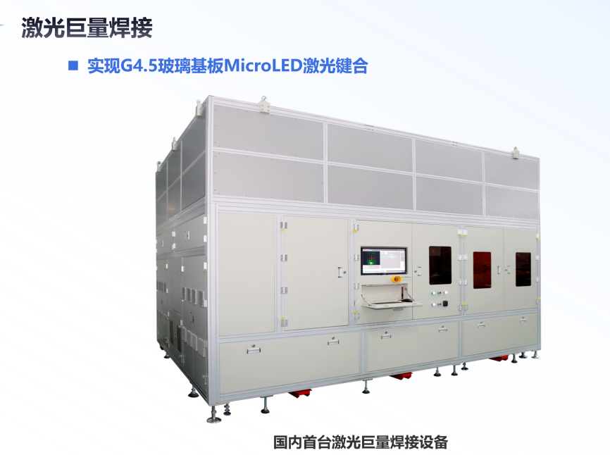 通過(guò)技術(shù)創(chuàng)新有效解決巨量轉(zhuǎn)移過(guò)程中的波長(zhǎng)一致性、精度與良率兼容問(wèn)題,并成功突破G4.5玻璃基大幅面焊接問(wèn)題等痛點(diǎn)和難點(diǎn)。