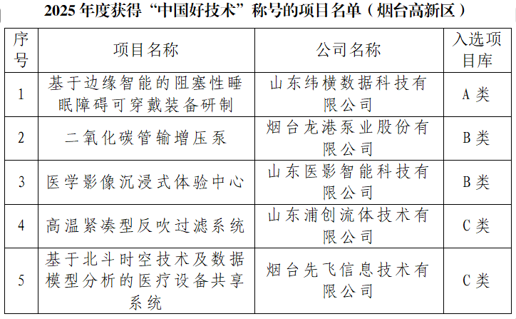 近日,中國生產(chǎn)力促進中心協(xié)會公布2025年度“中國好技術”評選結果,煙臺高新區(qū)推薦申報的5項科技成果從全國654項參評項目中脫穎而出,成功斬獲此項殊榮,涵蓋智慧醫(yī)療、高端裝備等關鍵領域,彰顯了區(qū)域創(chuàng)新驅動發(fā)展的強勁動能。
