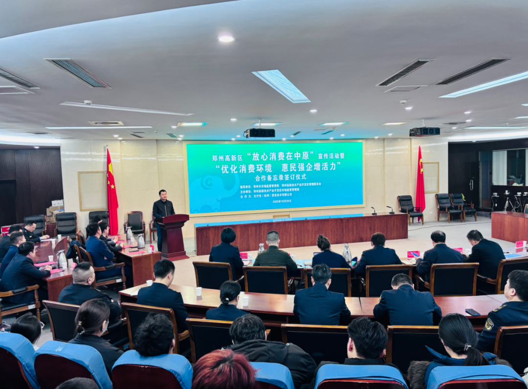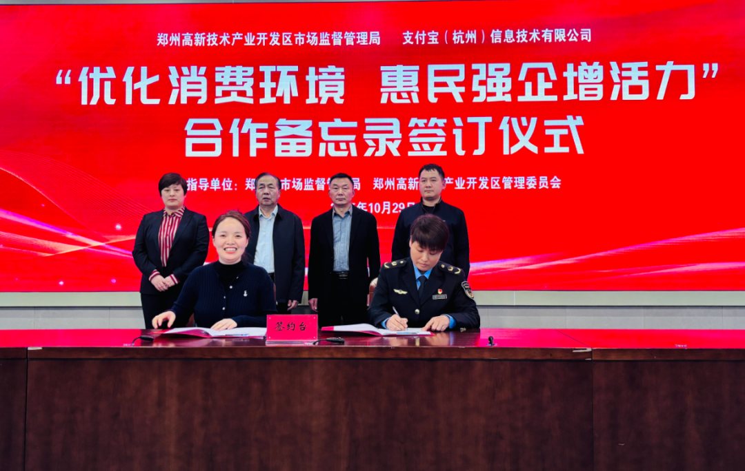 10月29日下午,在鄭州市市場(chǎng)監(jiān)管局與鄭州高新區(qū)管委會(huì)聯(lián)合指導(dǎo)下,鄭州高新區(qū)市場(chǎng)監(jiān)督管理局與支付寶(杭州)信息技術(shù)有限公司正式簽署“優(yōu)化消費(fèi)環(huán)境 惠民強(qiáng)企增活力”合作備忘錄,并同步啟動(dòng)“放心消費(fèi)在中原”宣傳活動(dòng)。雙方共同打造的“線下消費(fèi)云端和解”新模式在河南省尚屬首創(chuàng),標(biāo)志著鄭州在運(yùn)用數(shù)字技術(shù)優(yōu)化消費(fèi)環(huán)境、提升消費(fèi)維權(quán)效能方面邁出關(guān)鍵一步。