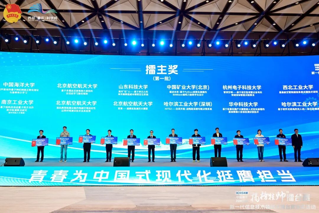 10月28日,2025年度中國(guó)青年科技創(chuàng)新“揭榜掛帥”擂臺(tái)賽新一代信息技術(shù)領(lǐng)域主擂臺(tái)賽頒獎(jiǎng)儀式,在西部科學(xué)城重慶高新區(qū)科學(xué)會(huì)堂圓滿落幕。