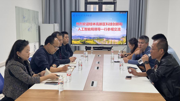 10月29日,在桂林高新區(qū)科技創(chuàng)新和人工智能局局長董冰的帶領(lǐng)下,桂林高新區(qū)科技與人才中心副主任梁怡,以及桂林藝研科技有限公司、桂林創(chuàng)研科技有限公司、桂林光啟光電子科技有限公司3家企業(yè)負責(zé)人,共赴桂林電子科技大學(xué)開展光電子信息專題對接交流活動。