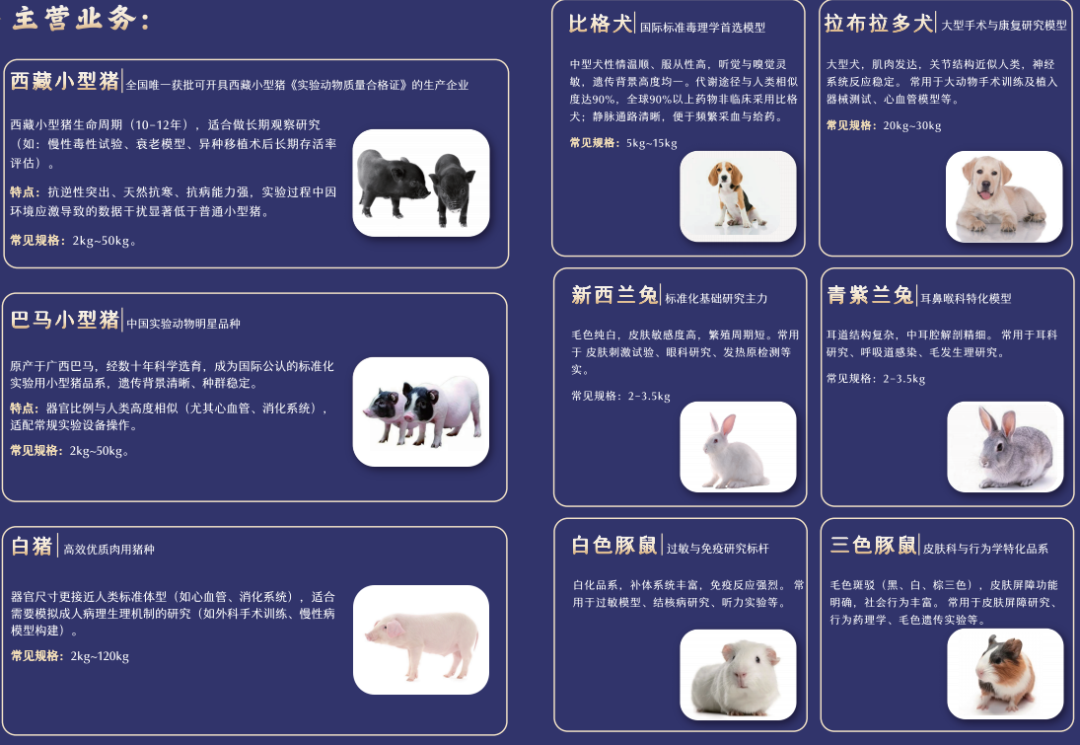 作為國內(nèi)大型實驗動物(小型豬、兔)的重要供應(yīng)商,明珠生物已取得實驗動物生產(chǎn)許可證,建有面積50余畝的現(xiàn)代化生產(chǎn)與研發(fā)基地,實驗動物遺傳背景清晰,環(huán)境動態(tài)監(jiān)測符合標(biāo)準(zhǔn),實現(xiàn)從物種育種、遺傳質(zhì)量控制到供應(yīng)鏈安全的全程自主可控,可提供種類齊全、規(guī)格標(biāo)準(zhǔn)的實驗動物及生物材料。