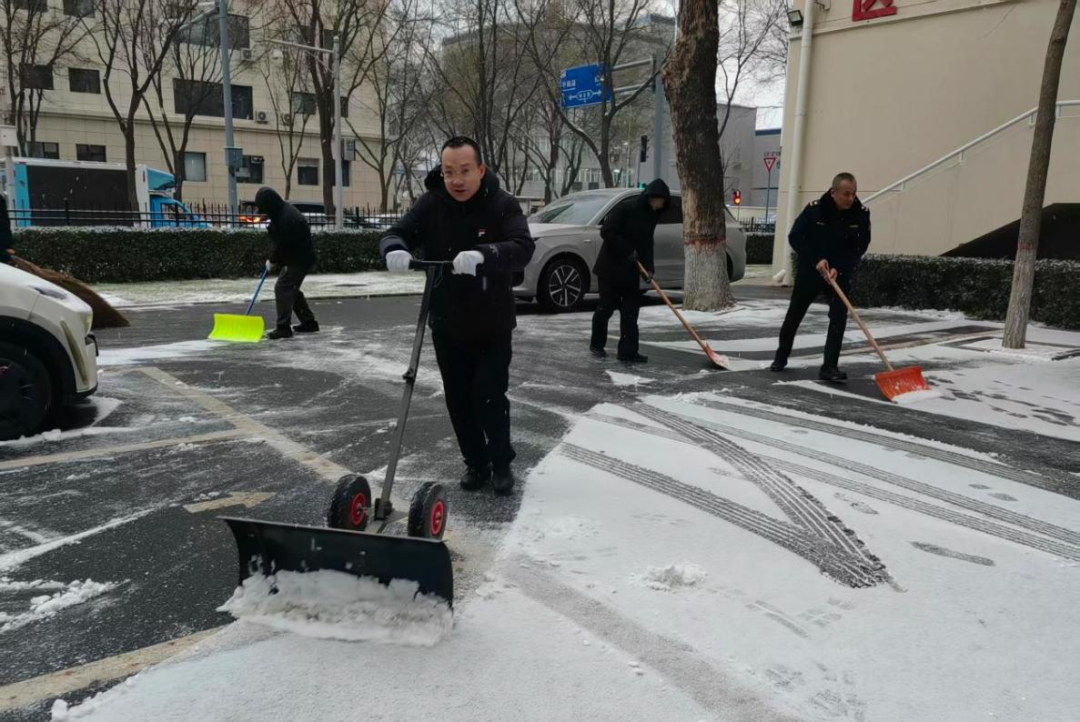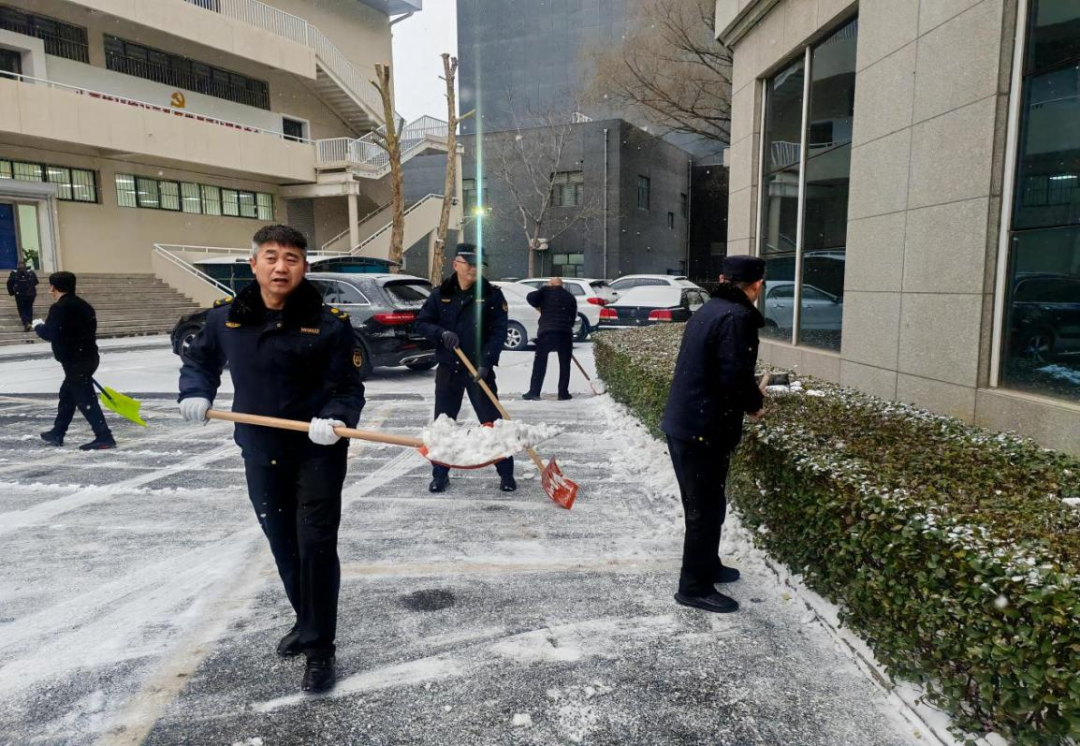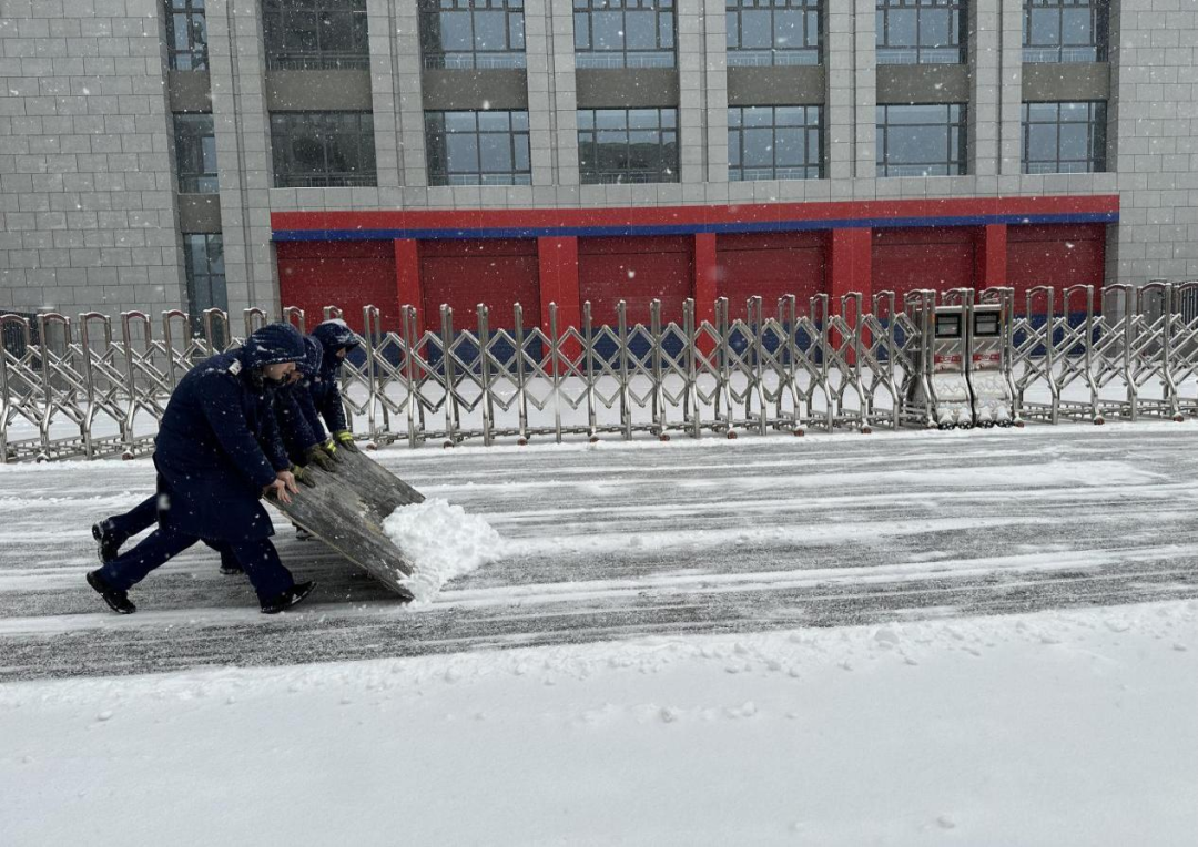 一是扛牢主體責(zé)任,迅速動員部署。學(xué)府園區(qū)組織中心及執(zhí)法、應(yīng)急管理人員50余人,全面開展園區(qū)掃雪除冰行動,對辦公院落、出入口等重點區(qū)域開展集中清掃,確保積雪及時清除。