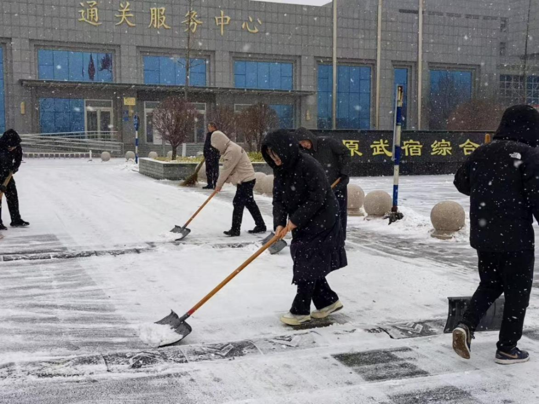 作為對外開放的重要窗口,武宿綜合保稅區(qū)的清雪行動緊扣“保障通關(guān)”這一核心使命。為保障園區(qū)企業(yè)通關(guān)、物流運輸和職工安全,武宿綜合保稅區(qū)服務(wù)中心聞“雪”而動,立即啟動除冰雪應(yīng)急預(yù)案。園區(qū)迅速調(diào)動專業(yè)除雪隊伍,對園區(qū)主干道、卡口通道、倉儲區(qū)及人行道進(jìn)行全面清掃和融雪處理。同時,加強(qiáng)海關(guān)卡口、倉庫屋頂巡查,及時清除積雪,防范安全隱患;協(xié)調(diào)駐區(qū)企業(yè)對停車場、物流通道除冰,并通過微信群等平臺發(fā)布安全提示,提醒企業(yè)注意防滑、保暖及貨物防護(hù)。