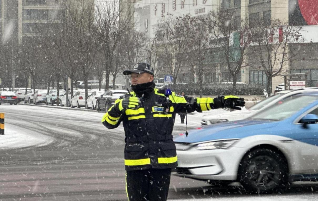 一方面,迅速清理單位周邊及關(guān)鍵路口積雪,快速恢復(fù)局部通行條件;另一方面,也是更繁重的任務(wù),是加強(qiáng)全區(qū)重點路段、坡道橋梁的巡邏管控與定點值守。警燈在雪幕中閃爍,民警在寒風(fēng)中疏導(dǎo)交通、處置事故、幫助受困車輛。針對雪天易發(fā)的簡易事故,他們堅持“快處快撤”原則,嚴(yán)防二次事故和交通擁堵。與此同時,交警部門主動與建管、環(huán)衛(wèi)部門“并肩作業(yè)”,信息互通、勤務(wù)互補,共同朝著“隨下隨清、雪停路凈”的目標(biāo)努力。他們的身影,賦予了“護(hù)航保暢”最直觀的定義,用堅守最大程度降低了交通安全風(fēng)險,守護(hù)著每一輛車的平安歸途。