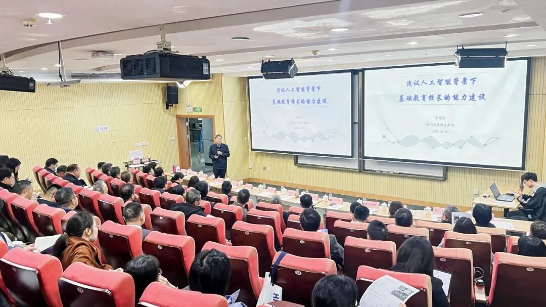 上午的推介交流會上,在主旨報告環(huán)節(jié),集美大學(xué)黨委原副書記、校長李清彪以《淺議人工智能背景下基礎(chǔ)教育校長的能力建設(shè)》為題作專題分享。面對人工智能深刻重塑教育生態(tài)的時代浪潮,李教授聚焦“校長能力建設(shè)”這一核心命題,系統(tǒng)闡釋了校長角色應(yīng)從管理者向數(shù)字領(lǐng)導(dǎo)者進行戰(zhàn)略轉(zhuǎn)型,并重構(gòu)其數(shù)字領(lǐng)導(dǎo)力的必要性與路徑。他進一步剖析了在技術(shù)賦能下,學(xué)校治理、教師發(fā)展與課程創(chuàng)新等關(guān)鍵領(lǐng)域的實踐策略,分享了一系列可落地的AI教育行動方案,為校長們化挑戰(zhàn)為機遇、引領(lǐng)學(xué)校高質(zhì)量發(fā)展、培育面向未來的時代新人提供了清晰而有力的指引,其分享內(nèi)容在現(xiàn)場引發(fā)了廣泛而深刻的共鳴。