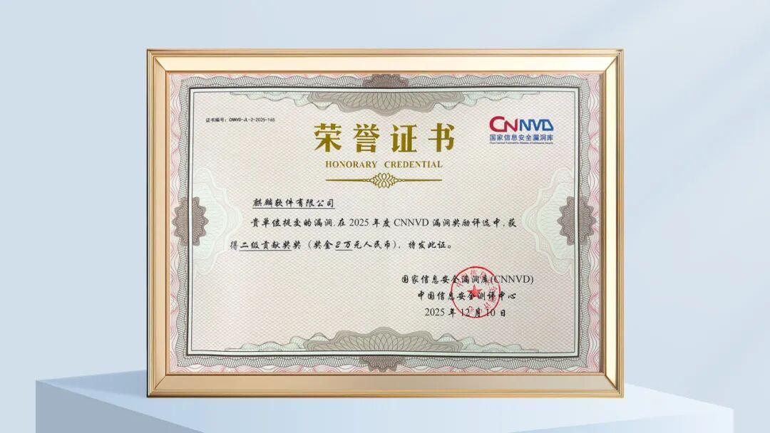 日前,天津?yàn)I海高新區(qū)企業(yè)麒麟軟件亮相第十五屆“網(wǎng)絡(luò)安全漏洞分析與風(fēng)險(xiǎn)評(píng)估大會(huì)(VARA)”大會(huì),展示在漏洞治理方面的重要成果。憑借在漏洞治理與生態(tài)共建方面的突出貢獻(xiàn),麒麟軟件榮獲“2025年度CNNVD漏洞消控優(yōu)秀貢獻(xiàn)單位”“2025年度基礎(chǔ)軟硬件聯(lián)盟優(yōu)秀成員單位”稱號(hào),并在2025年度漏洞獎(jiǎng)勵(lì)評(píng)選中,收獲5個(gè)二級(jí)貢獻(xiàn)獎(jiǎng)。