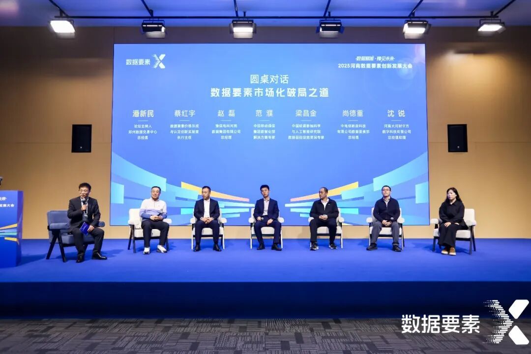 活動(dòng)還設(shè)置了以“數(shù)據(jù)要素市場化破局之道”為主題的圓桌對話環(huán)節(jié),由鄭州數(shù)據(jù)交易中心總經(jīng)理潘新民主持。數(shù)據(jù)要素價(jià)格形成與認(rèn)定創(chuàng)新實(shí)驗(yàn)室執(zhí)行主任蔡紅宇、豫信電科河南數(shù)據(jù)集團(tuán)總經(jīng)理趙磊、中國移動(dòng)通信集團(tuán)數(shù)智化部解決方案專家范濮、中國聯(lián)通數(shù)據(jù)科學(xué)與人工智能研究院數(shù)據(jù)基礎(chǔ)設(shè)施資深專家梁昌金、中電信數(shù)政科技有限公司數(shù)據(jù)要素部總經(jīng)理尚德重、河南大河財(cái)立方數(shù)字科技公司總經(jīng)理助理沈銳六位嘉賓,結(jié)合自身實(shí)踐經(jīng)驗(yàn)與前沿思考,從政策落地、企業(yè)實(shí)踐、技術(shù)支撐與資本賦能多個(gè)維度,深入探討數(shù)據(jù)要素市場化價(jià)值化的可行路徑與發(fā)展感悟,進(jìn)一步凝聚了行業(yè)共識。