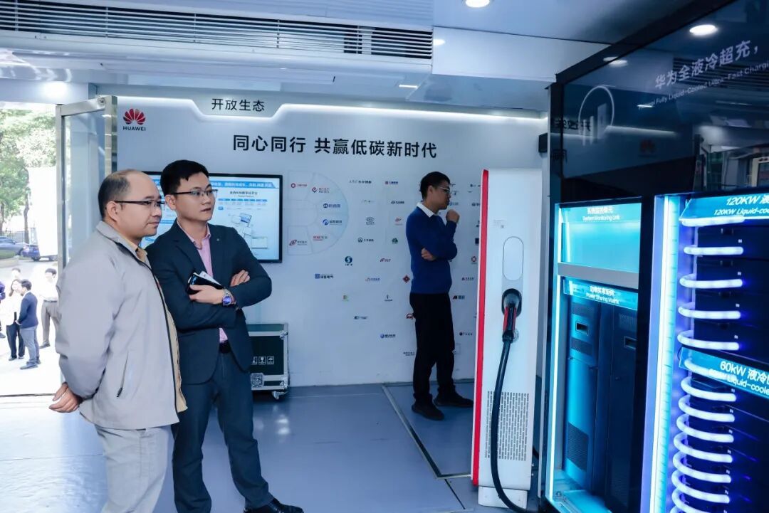 儀式結束后,與會嘉賓實地探訪了這座智慧能源“微樞紐”。在數(shù)控中心,智慧能源管理平臺正實時調(diào)控著光伏、儲能與充電負荷,實現(xiàn)多能協(xié)同與高效利用。步入場站,嘉賓們親身體驗了華為全液冷超充技術的高效補能,并參觀了華為“碳路中國行”展車,沉浸式感受數(shù)字能源技術與綠色基建融合的創(chuàng)新實踐。